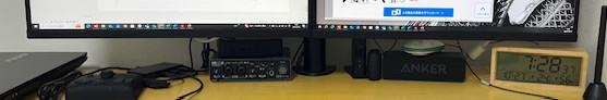 ・モニターの足がないから、モニターの下にモノが置ける(ミニPCやら時計も置ける)。。モニターアームを取り付けて初めて気がついたメリットです。