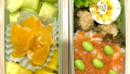 ムスメがお弁当はフルーツがいいと言うので、そのリクエストに応えて、フルーツてんこ盛り弁当作りました。今回のごはんパートは「シャケ」です。