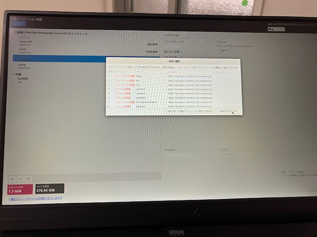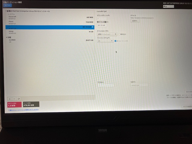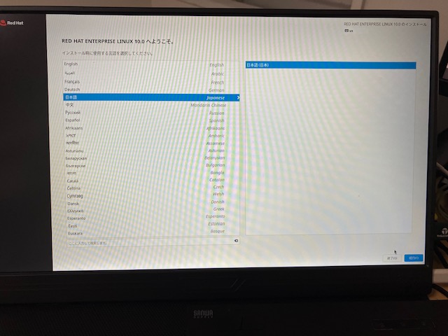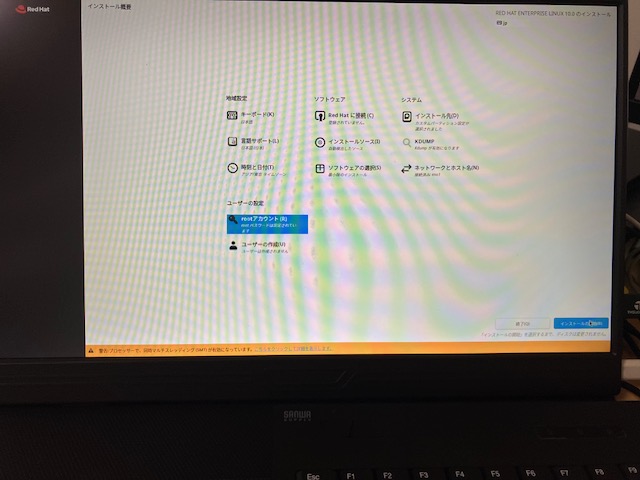 インストールメディアは、無料トライアル(60日)を申し込んでダウンロードした rhel-10.0-x86_64-dvd.iso をUSBフラッシュメモリに格納して作成しました。