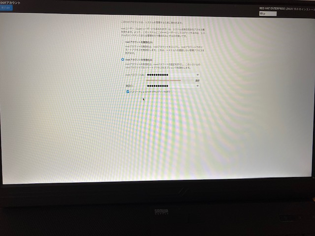 今回の設定では、rootアカウントを有効化して、「パスワードによるroot SSHログイン」も有効にしています。rootのパスワードを入力します。